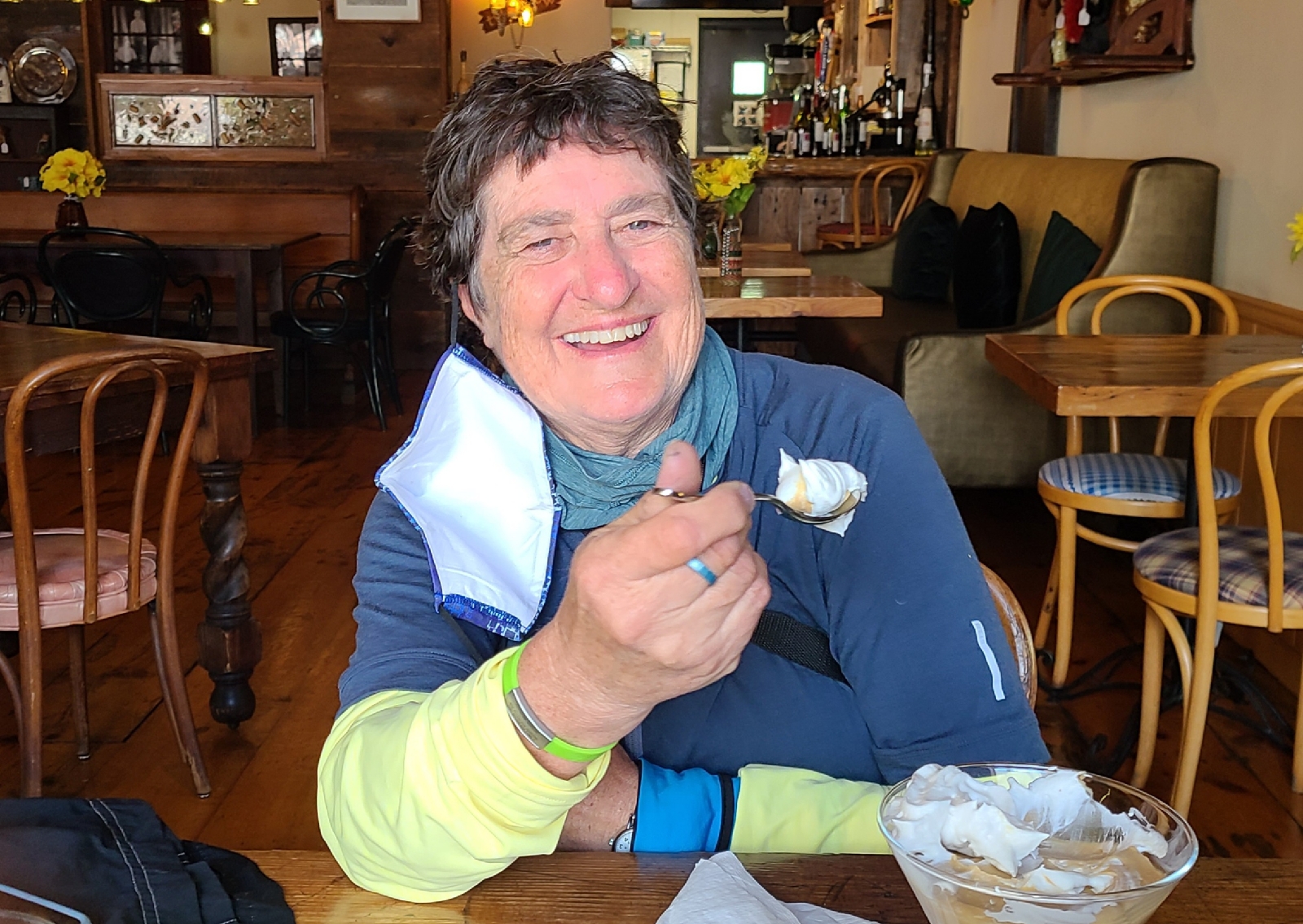 We decided on lunch and ordered a takeout dinner as well. Both were excellent and we happily recommend Buddy Lou's for a stop and a meal. Christine scooped some cream and butterscotch from our desert. The scoop looked like Alf and she could not eat it at first.